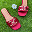 Introducing Maroon Slides, a sophisticated and stylish take on everyday slides. Crafted from luxe raw silk, these slides feature a golden buckle for a hint of opulence. Step into all-day comfort with Midnight Maroon.